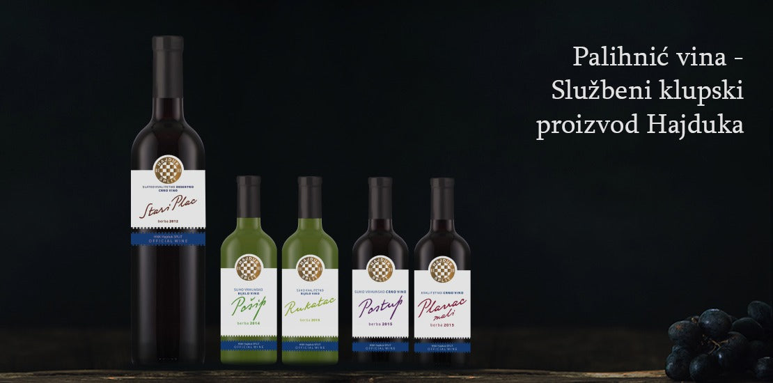 Z izjemno ponosom izpostavljamo sodelovanje z Nogometnim klubom Hajduk, za katerega uradno proizvajamo in polnimo vina v pakiranjih po 0.187 L, 0.75 L in 1 L. Vina, ki jih najdete pod blagovno znamko Hajduka, so Plavac Pelješac, Plavac Selekcija, Dingač, Rukatac, Rosé in desertno vino Stari plac.